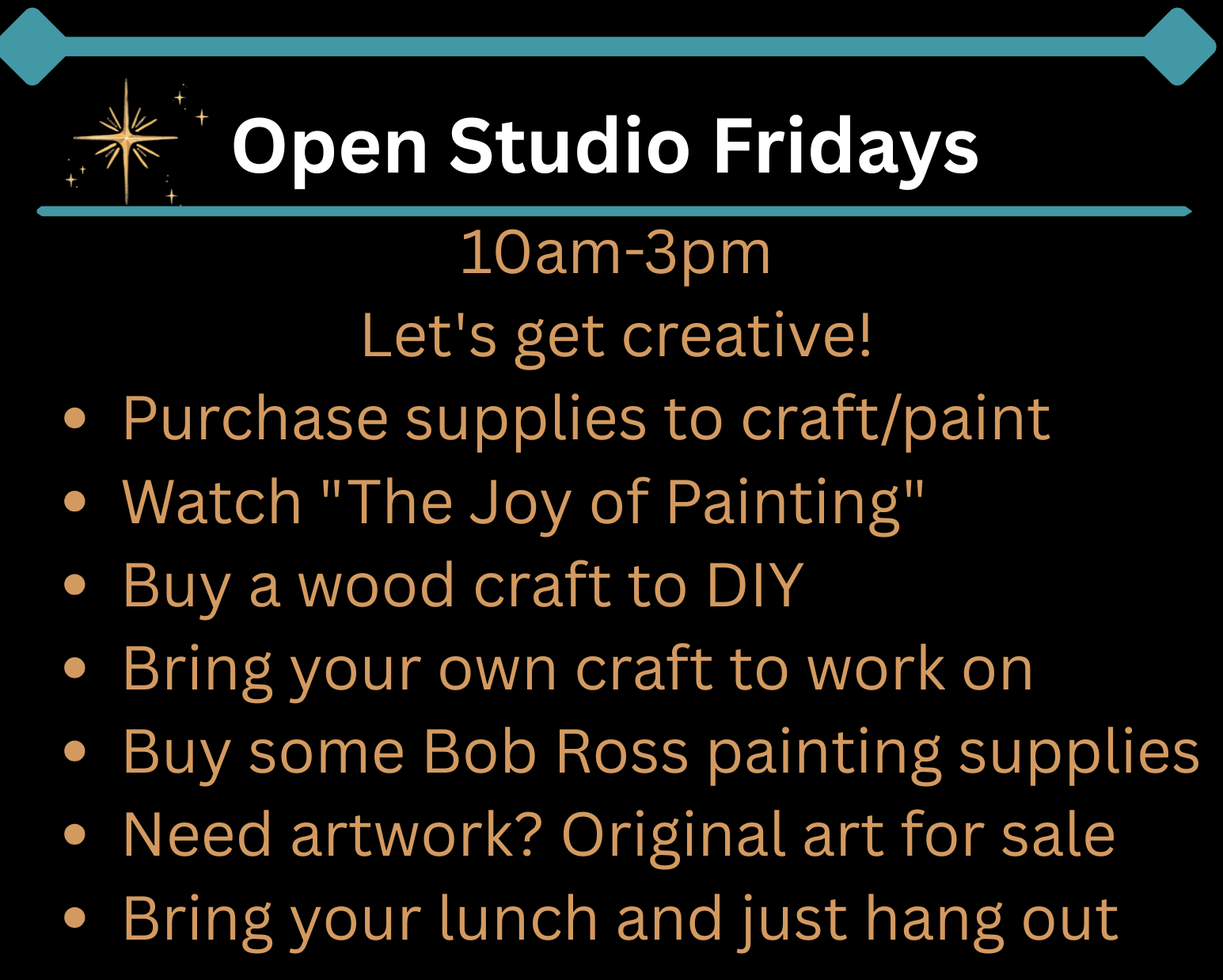 My studio was built around the idea that art should be fun, relaxing, and accessible to everyone. Whether you're picking up a paintbrush for the first time or you've been creating for years, this is a place where you can feel comfortable expressing yourself, and be part of something great.